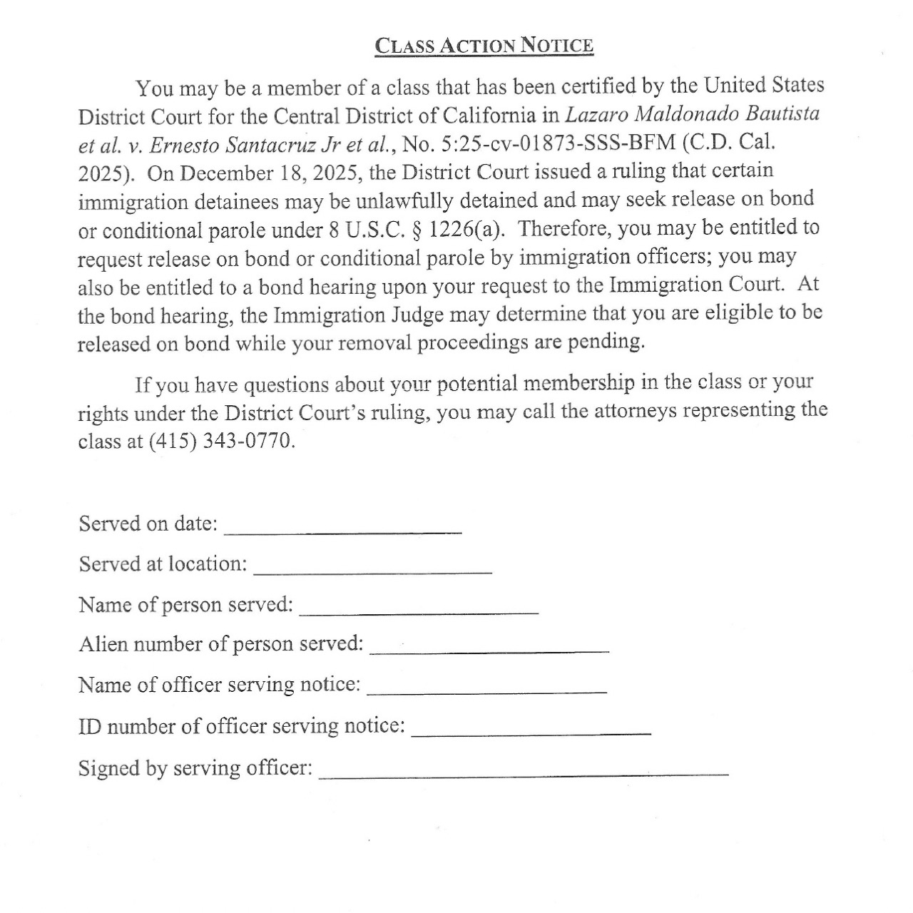 In some immigration detention centers, the government is giving this notice to all immigrants, whether or not the Maldonado Bautista lawsuit applies to them.